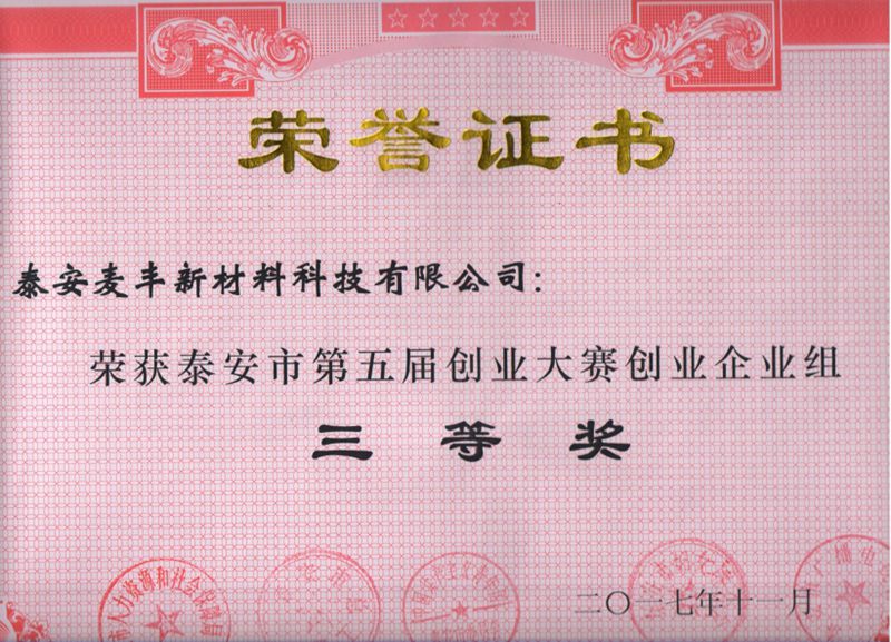 泰安市創(chuàng)新創(chuàng)業(yè)大賽三等獎(jiǎng)